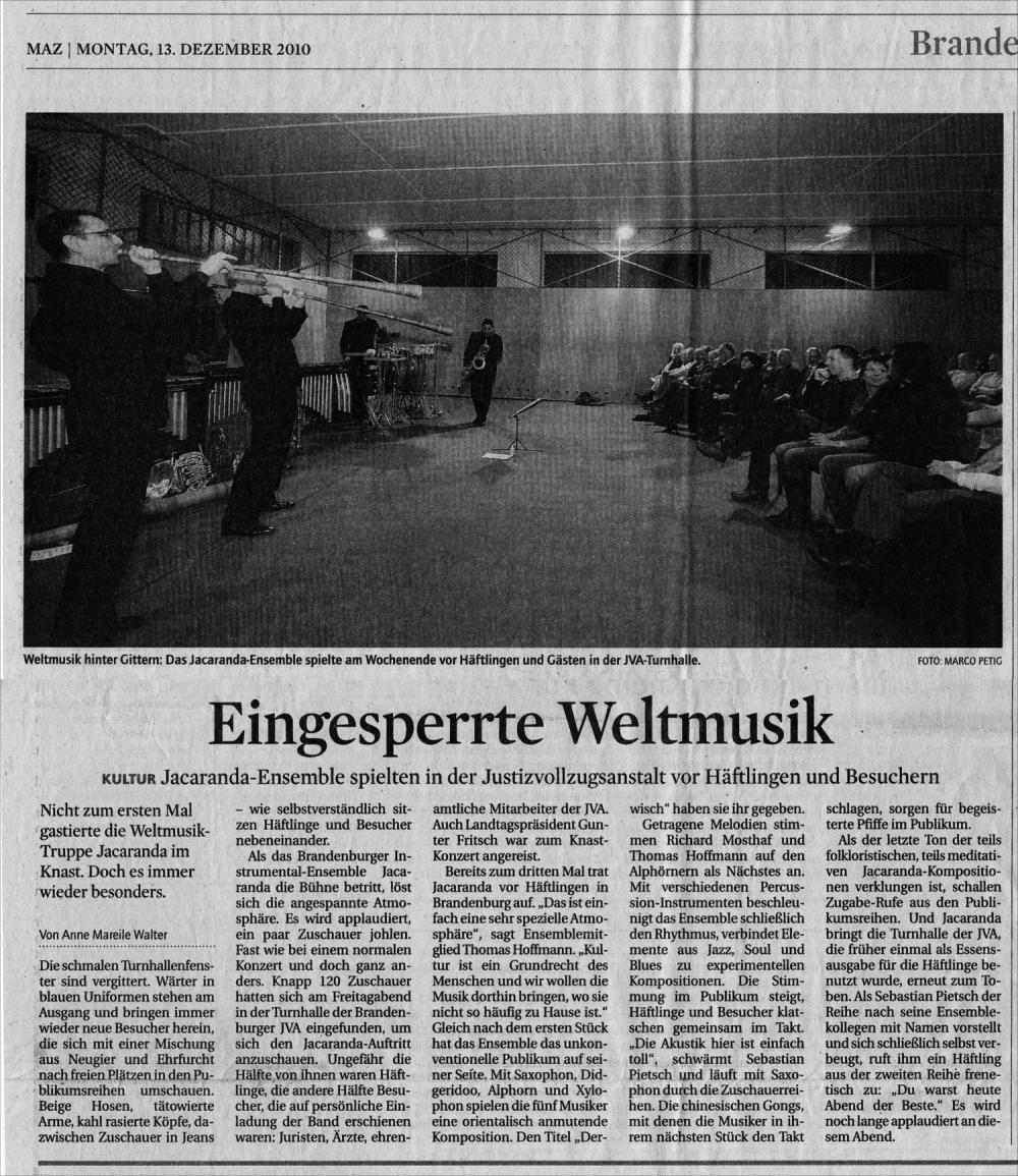 Foto: Weltmusik hinter Gittern: Das Jacaranda-Ensemble spielte am