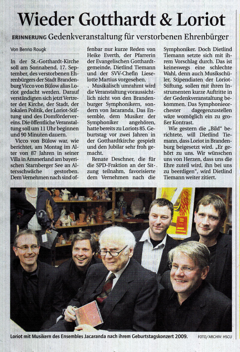 Bülow alias Loriot gedacht werden. Darauf verständigten sich